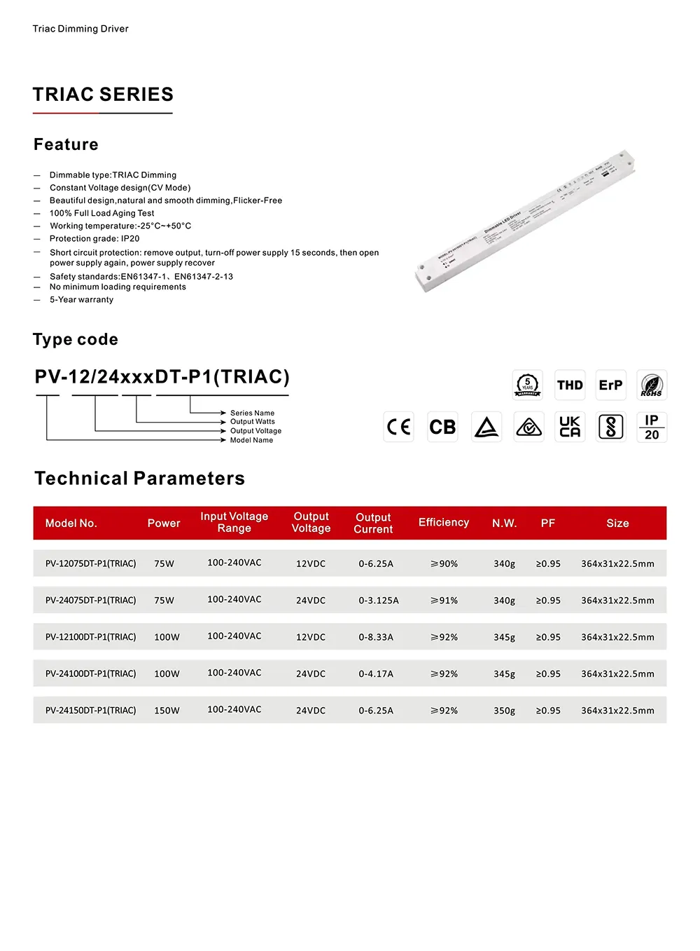 Спецификация светодиодного драйвера Starwell с триаком постоянного напряжения и регулируемой яркостью: