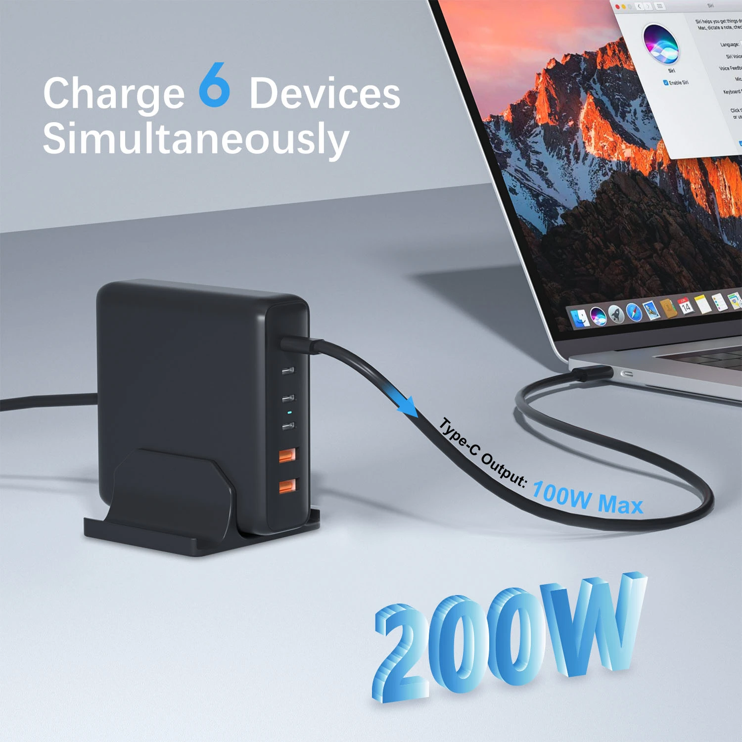 Быстрое зарядное устройство GAN 200 Вт 4 USB-C + 2 USB-A Зарядное устройство PD 200 Вт