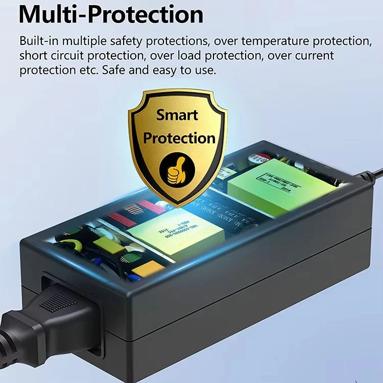 Прочный универсальный адаптер питания для настольных ПК Starwell 24 В, 7,5 А отличается высокой эффективностью преобразования, минимальными пульсациями и шумом, а также отличным регулированием напряжения при различных нагрузках. Корпус обеспечивает эффективное рассеивание тепла и долговечность. Комплексные схемы защиты защищают от перенапряжения, перегрузки по току, короткого замыкания и перегрева, повышая безопасность оборудования и пользователей.
