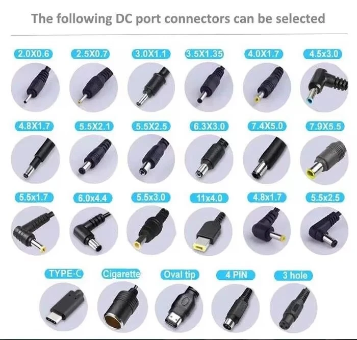 3. Совместимость разъема. Убедитесь, что выходная вилка адаптера постоянного тока имеет правильную полярность (часто положительную по центру) и физический размер (например, 5,5 x 2,1 мм), чтобы надежно прикрепить ее к разъему питания вашего устройства.