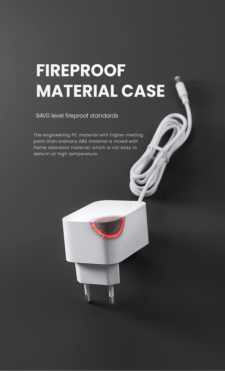 Основой его производительности является стабильный выходной сигнал источника питания 12 В, 2 А, 24 В, 1 А. Эти точные электрические характеристики гарантируют, что ваше оборудование получает стабильное и чистое электропитание, защищает его от потенциального повреждения, вызванного колебаниями напряжения, и продлевает срок его службы. Ваша безопасность – наша главная забота. Вот почему наши адаптеры гордятся тем, что получили сертификаты GS/CE/ERP/ROHS. Эти строгие международные сертификаты являются вашей гарантией того, что ваши продукты прошли строгие испытания на электрическую безопасность, электромагнитную совместимость и воздействие на окружающую среду, что делает их пригодными для использования на различных рынках по всему миру. Кроме того, конструкция адаптера изготовлена из высококачественного огнестойкого материала ПК, обеспечивающего критически важный защитный слой от перегрева и потенциальной опасности возгорания.