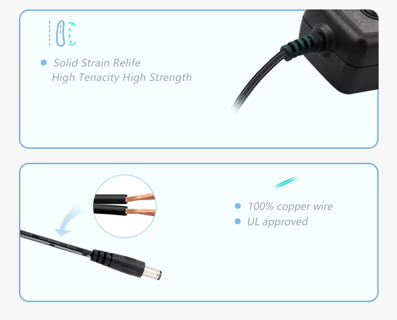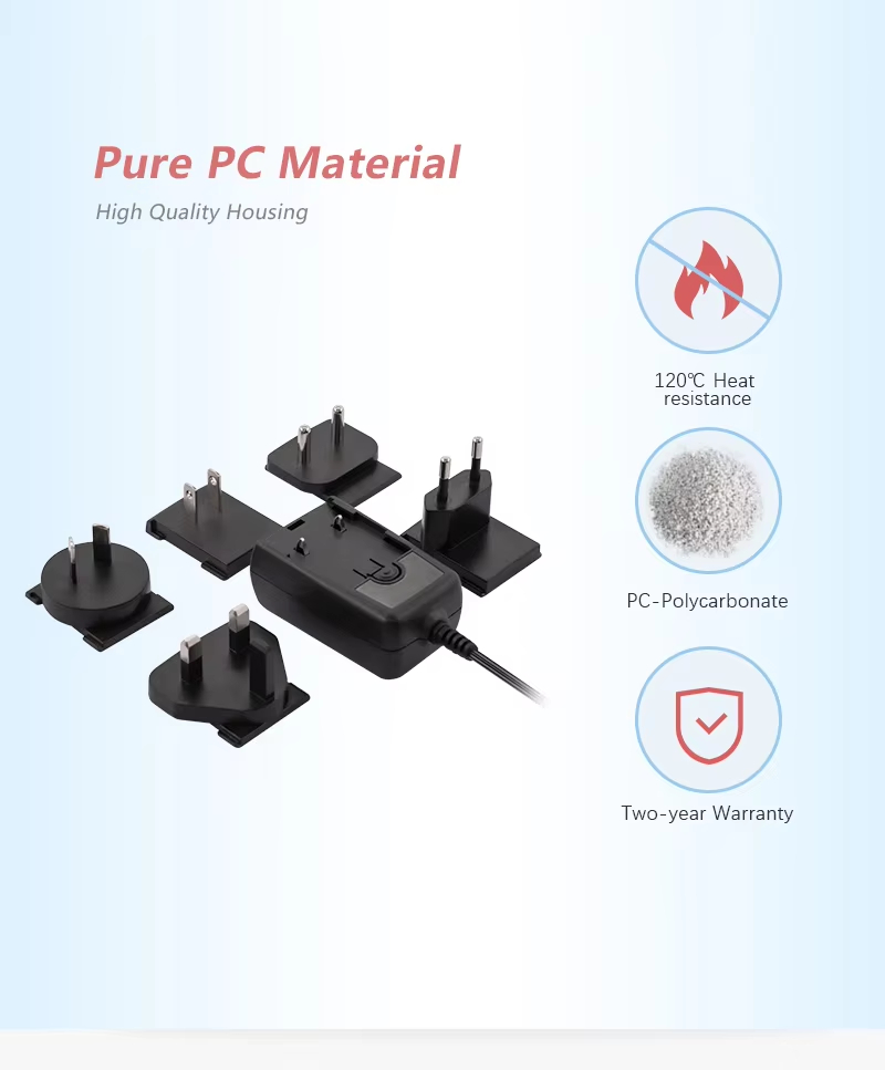 Эффективный и стабильный источник питания. В качестве высокопроизводительного адаптера питания мощностью 24 Вт он использует передовую технологию импульсного источника питания со сменными вилками для достижения эффективного преобразования. Он может стабильно преобразовывать переменный ток в постоянный (переменный адаптер питания переменного тока в постоянный), обеспечивая непрерывную и чистую энергию для ваших устройств.