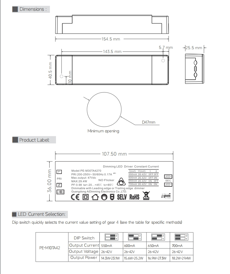 Сверхмалый размер, используемое сырье первоклассных брендов, импортный чип, конструкция со сверхглубоким затемнением, соответствующая диммерам различных европейских марок. Защита от перенапряжения 2 кВ, плавное затемнение, отсутствие мерцания, конструкция с регулируемым током, низкий уровень шума в процессе затемнения.