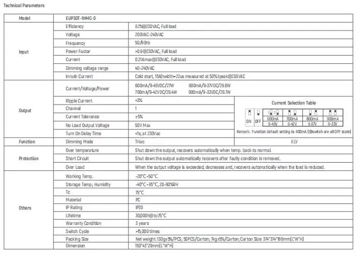 Являясь профессиональным производителем и поставщиком светодиодных драйверов в Китае, наш триаковый светодиодный драйвер постоянного тока с диммированием мощностью 30 Вт представляет собой устройство преобразования энергии, разработанное специально для светодиодных систем освещения средней и высокой мощности. Он использует передовую технологию управления постоянным током, чтобы обеспечить стабильную работу светодиодных шариков при номинальном токе, эффективно продлевая срок службы лампы и улучшая постоянство светоотдачи. Светодиодный драйвер с регулированием яркости постоянного тока подходит для сценариев освещения с высокими требованиями, таких как коммерческое освещение, промышленное освещение, наружные прожекторы и светильники для выращивания растений.