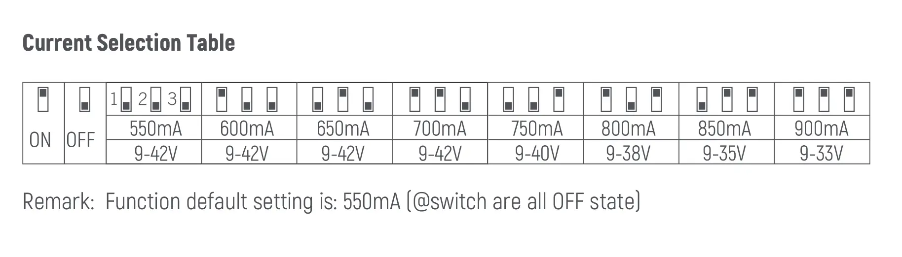Выходной ток: регулируемый, подробности см. в таблице выбора тока.