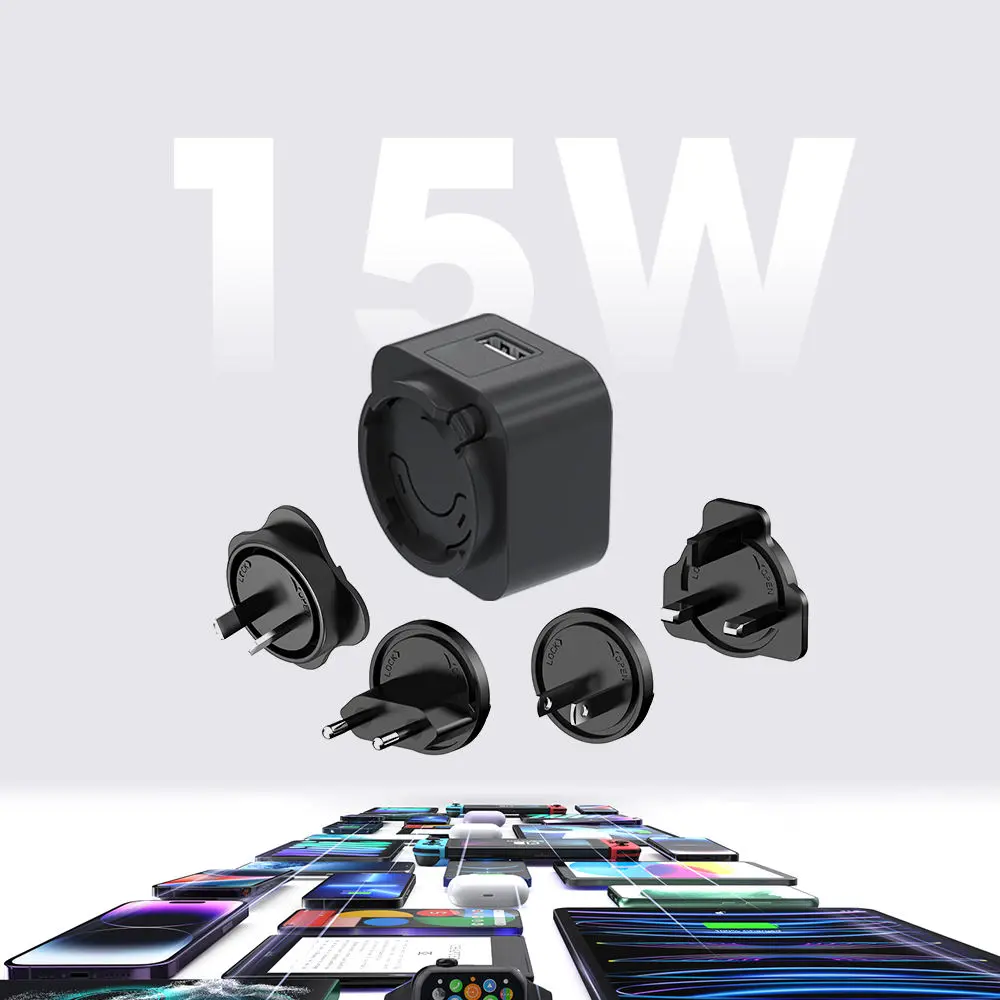 Полный набор съемных вилок (США/ЕС/Великобритания/Австралия/КР/Китай) обеспечивает беспрепятственное использование в более чем 150 странах — идеально подходит для международных путешествий и повседневного использования.