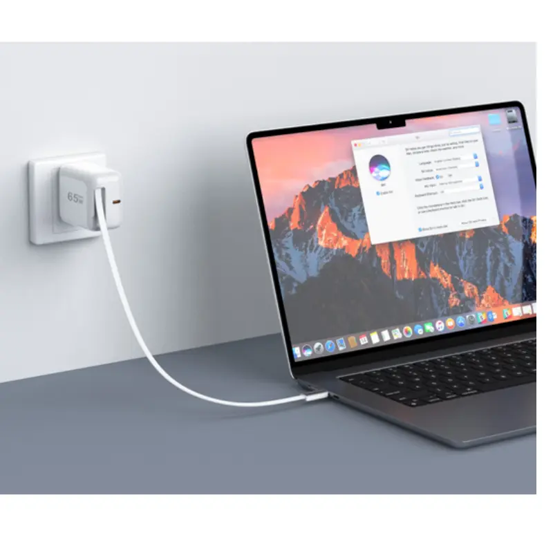 Высокоскоростная подача питания мощностью 65 Вт: обеспечивает быструю зарядку ноутбуков, планшетов и смартфонов с помощью передовой технологии PD 3.0, заряжая MacBook Pro до 50 % всего за 45 минут.