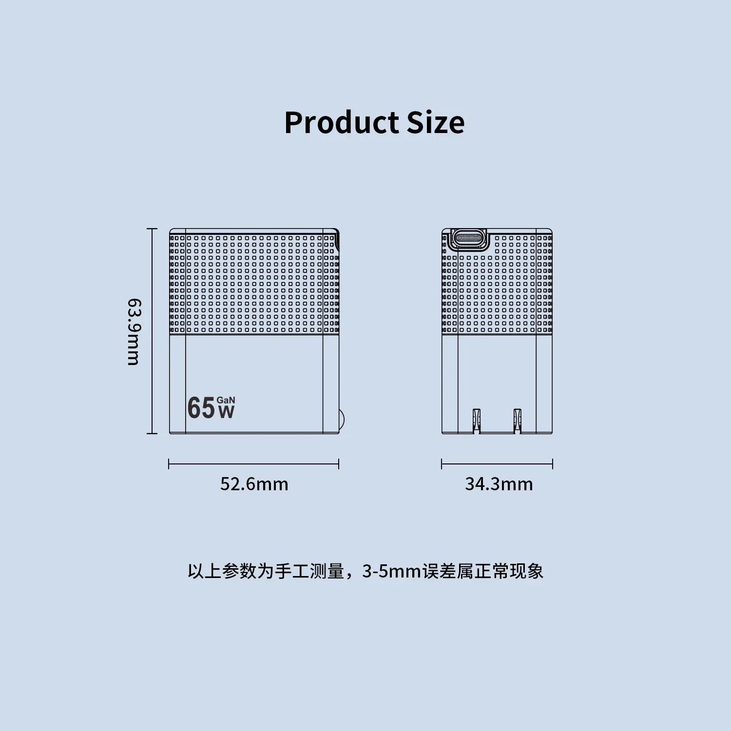 Два порта USB-C: зарядное устройство PD 3.0 мощностью 65 Вт может заряжать два устройства одновременно. Во время двух процессов зарядки мощность распределяется как 45 Вт и 20 Вт.