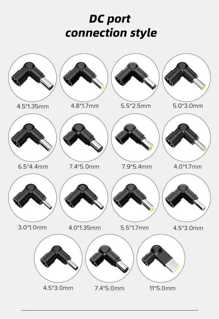 Этот настольный адаптер мощностью 65 Вт, разработанный для надежного и эффективного преобразования энергии, плавно преобразует переменный ток (AC) из стандартных настенных розеток в стабильный постоянный ток (DC), удовлетворяя потребности в электропитании широкого спектра электронных устройств.